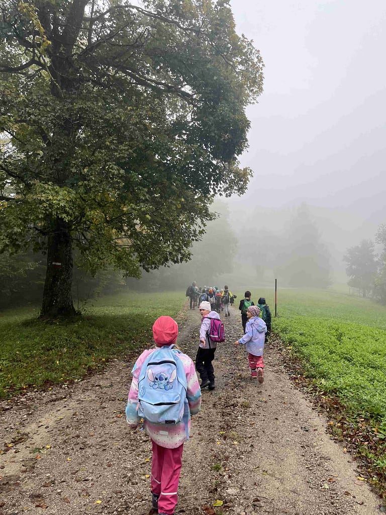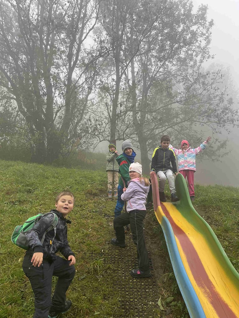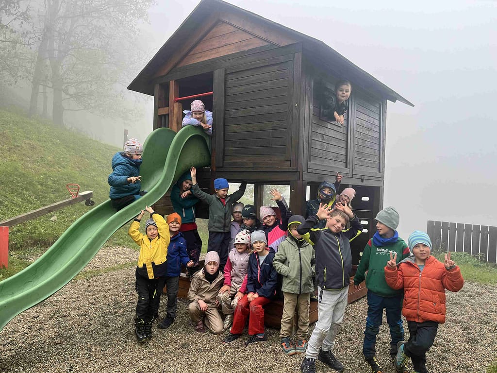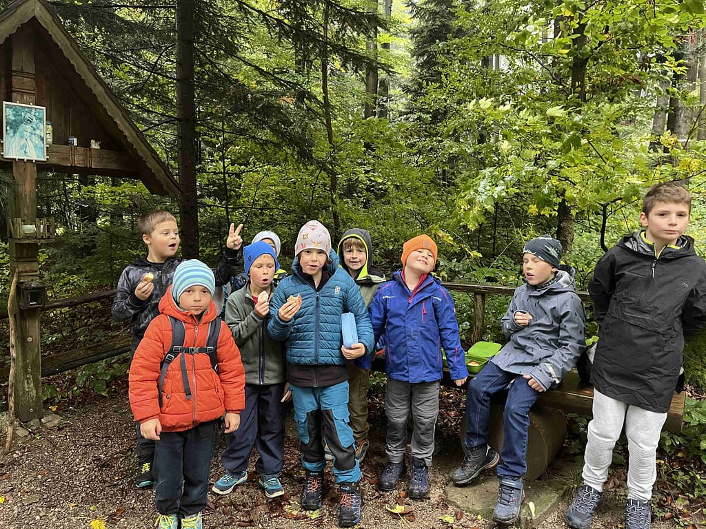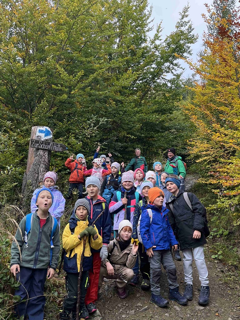 Bei sehr herbstlichem Wetter wanderten die Kinder der 2. Klasse in Begleitung von Emmas Papa, Opa Karli und Charly auf den Schöpfl. Der Aufstieg war anstrengend aber schön. In der Hütte wurden wir herzlich empfangen und der Spielplatz verlockte zum Toben. Unsere Wegsichtungen waren eine Blindschleiche und ein Feuersalamander, beide schon in Vorbereitung auf die Winterstarre. Dies war ein toller Schultag:-))