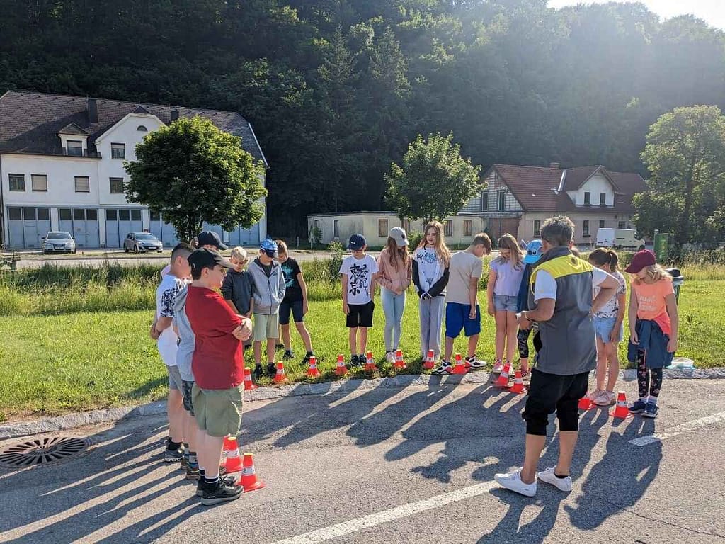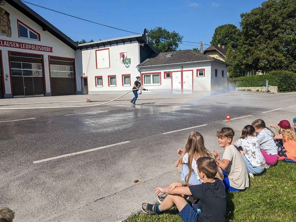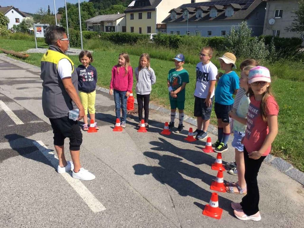 Die 3. und 4. Klasse wurde von einer Mitarbeiterin des ÖAMTC mit Unterstützung der örtlichen Feuerwehr zum Thema Sicherheit im Straßenverkehr geschult. Die Kinder lernten mit unterschiedlichen Übungen den eigenen Reaktionsweg, Bremsweg und Anhalteweg sowie den, anderer Verkehrsteilnehmer, insbesondere fahrender Autos, kennen. Auch durften die Kinder selbst im Auto mit der Trainerin bremsen. Die Kinder erfuhren dadurch, dass selbst eine Notbremsung ein Auto nicht sofort zum Stillstand bringen kann. Wir danken für das spannende Training!