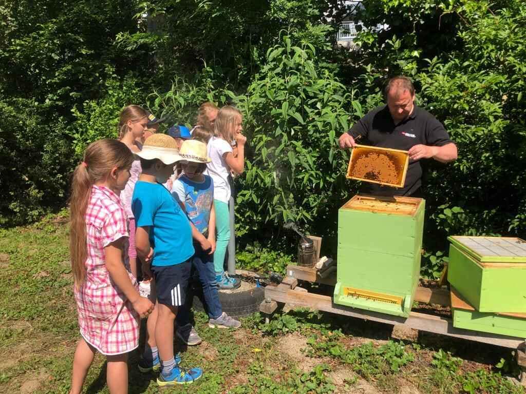 Passend zu unserem Wiesenprojekt, hat sich die 3. Klasse sehr intensiv mit dem Thema Bienen beschäftigt. Wir haben nicht nur in der Schule viel gearbeitet, gebastelt, gestaltet und gelernt, sondern durften unser Wissen auch am lebenden Objekt testen. Natürlich kam auch spielen und Jause essen nicht zu kurz:-) Vielen Dank an Familie Griesmayr für diesen lehrreichen Vormittag! Nur der Heimweg war bei dieser Hitze etwas beschwerlich! Gott sei Dank wurden wir von fleißigen Müttern ein Stückchen mit dem Auto mitgenommen. Auch dafür ein herzliches Dankeschön!