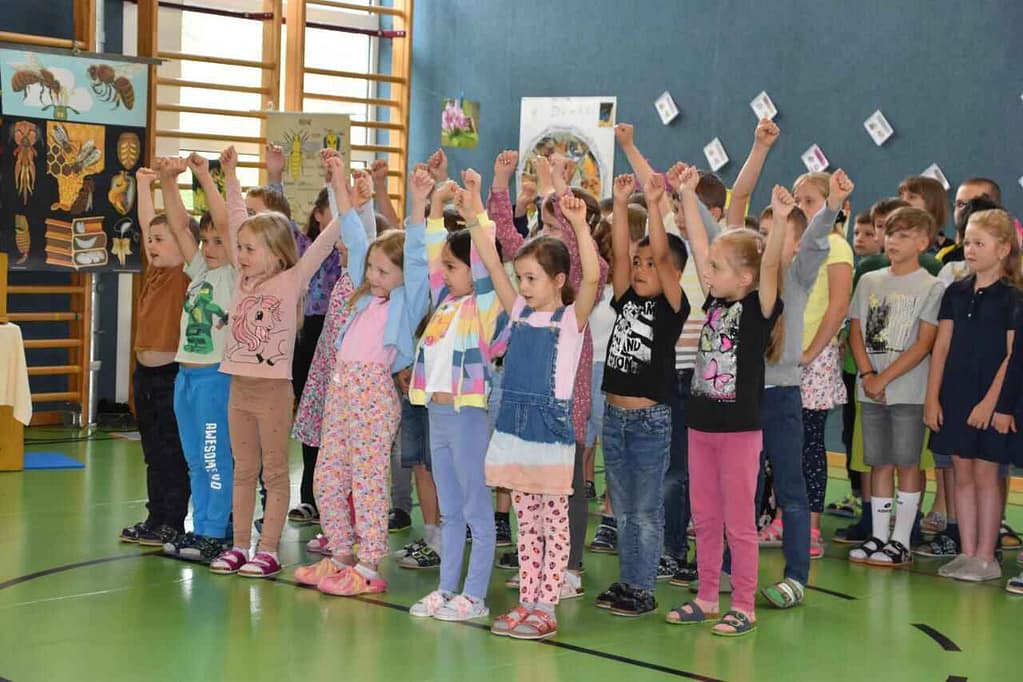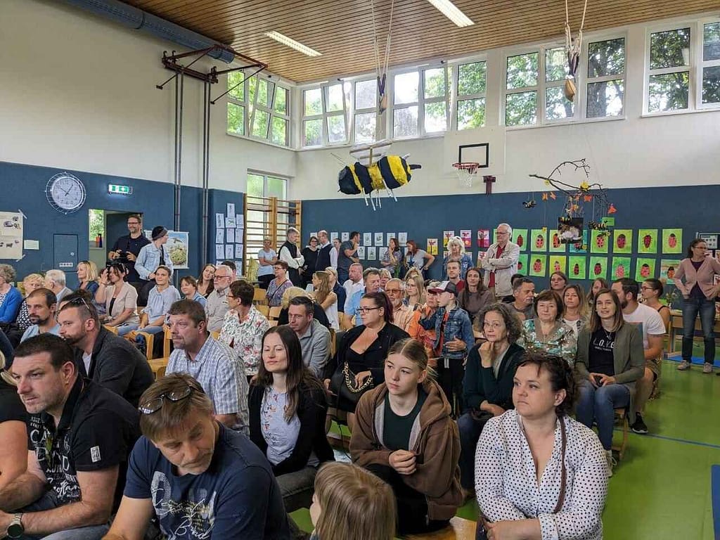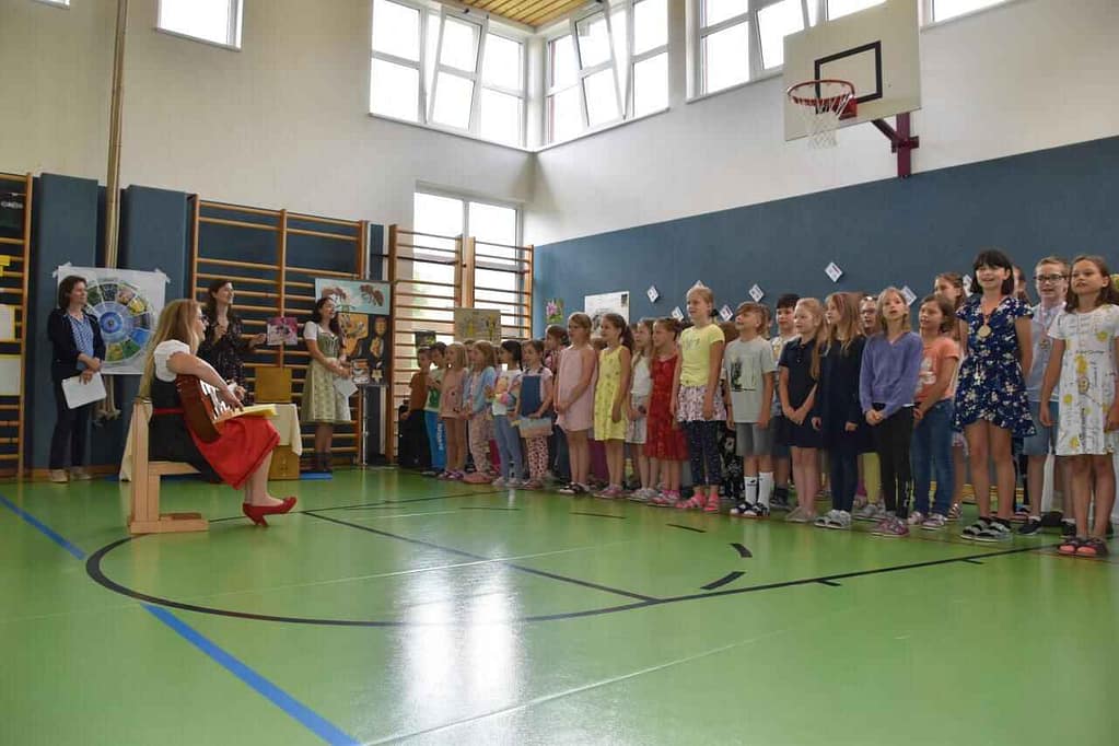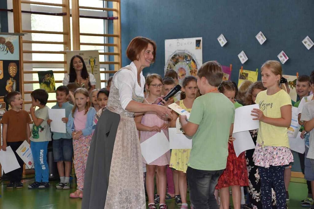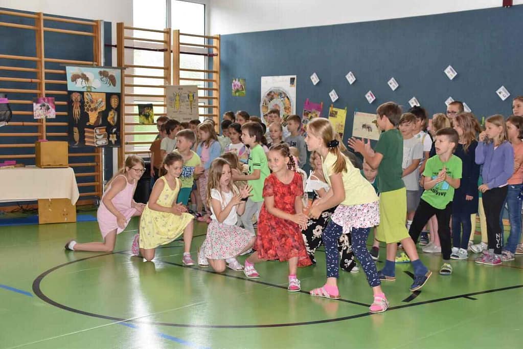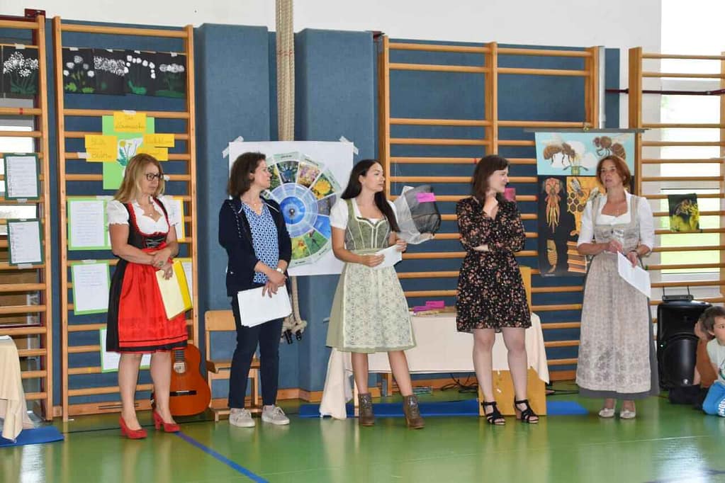 Der feierliche Abschluss des Wiesenprojektes, das Wiesenfest, war die Krönung der intensiven Auseinandersetzung mit dem klassenübergreifenden Thema. Jede Klasse hat sich seit einigen Wochen mit unterschiedlichen Bereichen der Wiese intensiv auseinandergesetzt, recherchiert, gebastelt und für die Aufführung geprobt. Die Ausstellung wurde in den Vortagen schon vorbereitet und in der Früh wurde der Turnsaal von Kindern, Eltern und Lehrpersonen festlich geschmückt. Den Beginn der Veranstaltung leitete Frau Direktor Grasel mit feierlichen Worten ein. Gemeinsam sangen die Kinder und Lehrpersonen ihr Eröffnungslied „Auf der Blumenwiese“. Die erste Klasse trug ein Schmetterlingsgedicht ausdrucksvoll vor, die zweite Klasse tanzte zu “Happy”, die dritte Klasse brachte das Publikum mit Wiesenwitzen zum Lachen und gab ein englisches Gedicht zum Besten. Die vierte Klasse unterhielt mit einem Wiesenquiz für die Eltern. Anschließend sangen die Kinder im Kanon “I like the flowers” und die vierte Klasse sang ein von den Kindern selbst geschriebenes Abschiedslied. Im Zuge des Festes wurden auch die Antolin-Leseurkunden überreicht. Ein umfassender Artikel und die Fotos wurden von der Journalistin Mirjam Preineder unter https://www.meinbezirk.at/baden/profile-516720/mirjam-preineder?type=article veröffentlicht. Wir bedanken uns herzlich für die Unterstützung!