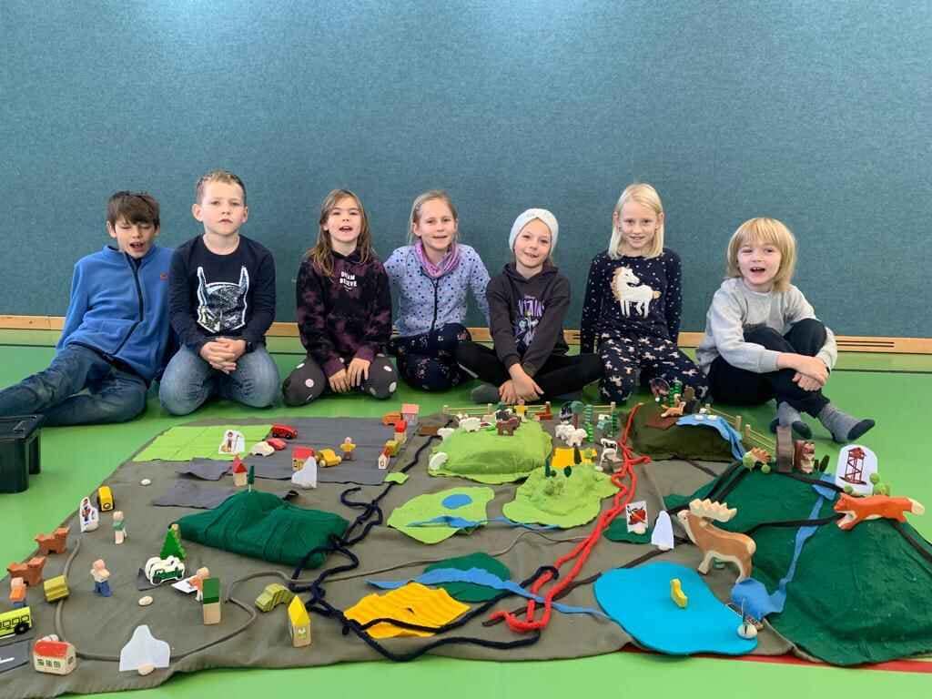 Heute konnte die 3. Klasse ihre Umgebung auf eine ganz besondere Art ergründen. Zuerst wurden die Besonderheit, Aufgabe und Organisation eines Biosphärenparks erforscht. Vor allem lag der Fokus auf der eigenen Region und dem Biosphärenpark Wienerwald. Anschließend konnten die Kinder in Gruppen einen eigenen Biosphärenpark bauen. Es entstanden wohldurchdachte Dörfer und Umgebungen, die den Erfindergeist der Kinder kitzelten und zu lustigen Dorfgeschichten anregten.