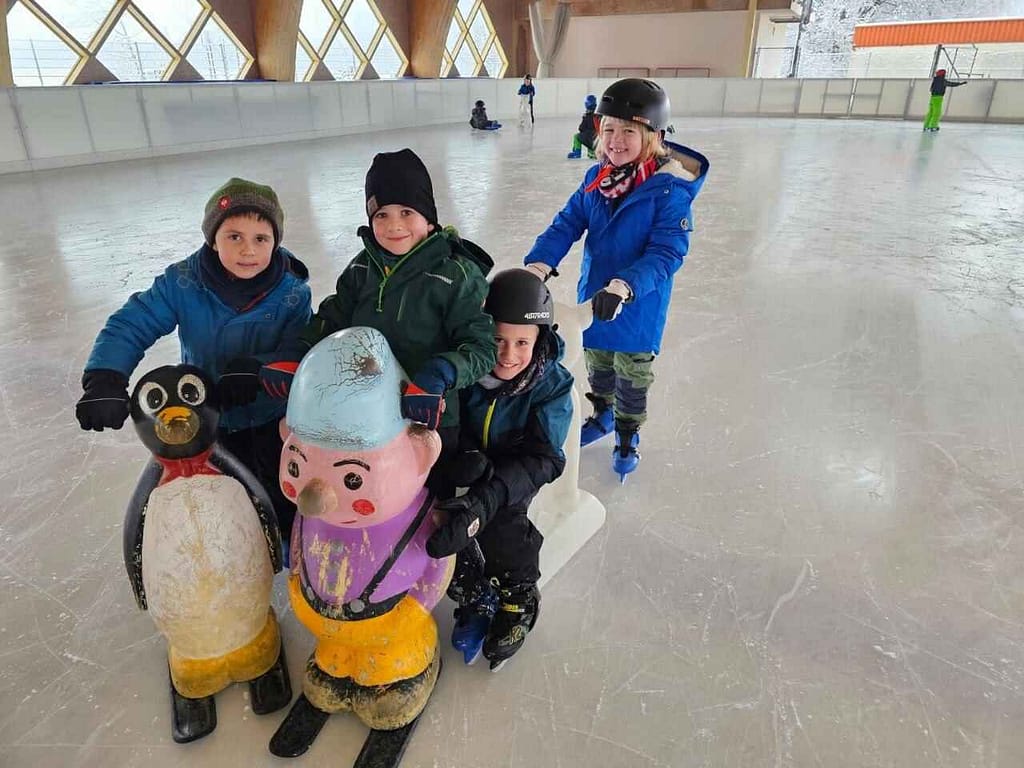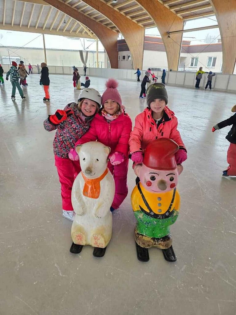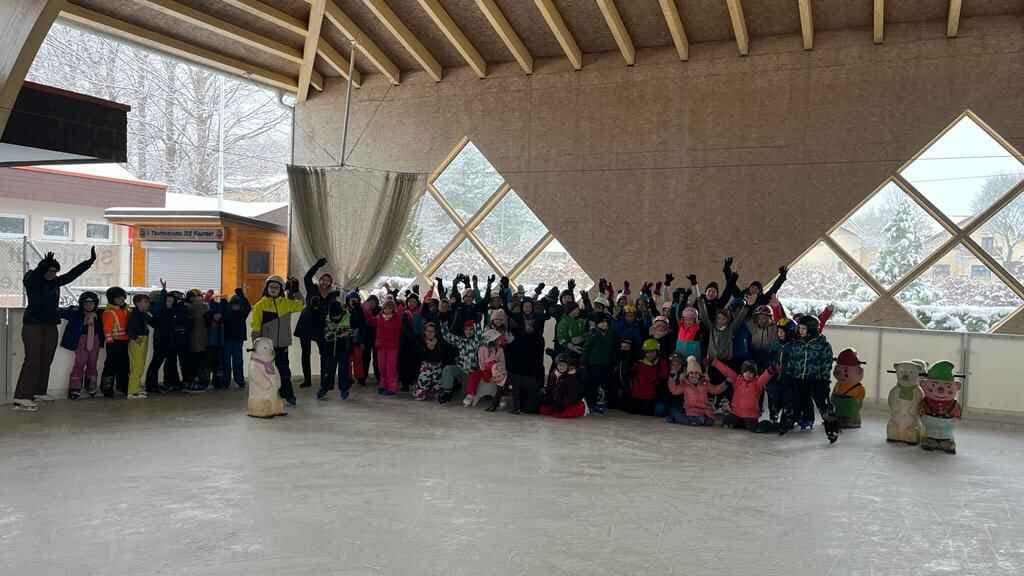 Wie jedes Jahr fahren die Kinder der Volksschule einen ganzen Schultag Eislaufen. In der Früh fuhren wir mit dem Bus zum Eislaufplatz Traiskirchen. Schnell waren die Eislaufschuhe angeschnallt und schon ging es los aufs Eis! Anfangs wurde noch vorsichtig der rutschige Untergrund getestet und nach kurzer Zeit flitzten die Kinder über die eisige Fläche. Esspause machten wir alle gemeinsam an den Tischen im Cafè. Besonderes Highlight war die Rettungsaktion eines Rotkehlchens, welches an den Glasscheiben nicht vorbei konnte. Frau Lehrerin Mailling fing es geschickt ein und entließ es mit den Kindern in die Freiheit. Nach einem schönen Tag am Eis fuhren wir zufrieden nach Hause. Wir bedanken uns herzlich bei dem Elternverein, der unsere Busfahrt bezahlt hat und bei den Eltern, die uns begleitet und tatkräftig unterstützt haben. Wir freuen uns schon im Februar noch einmal fahren zu können.