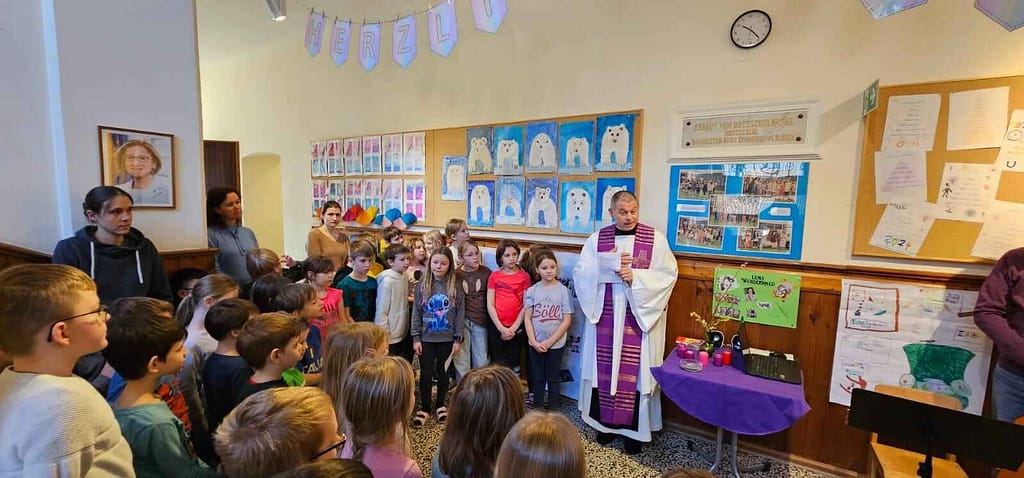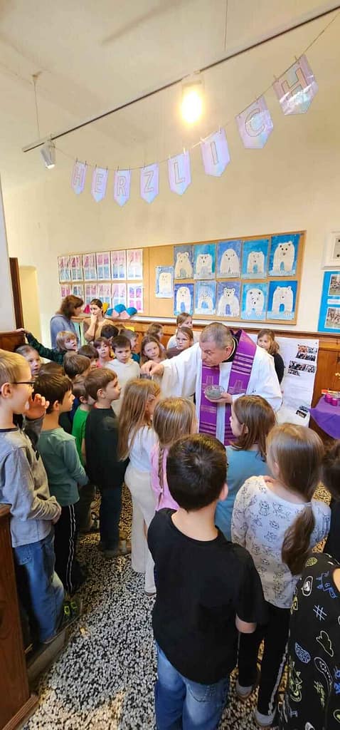 Zu Beginn der christlichen Fastenzeit wurde an unserer Schule den Kindern das Aschekreuz gegeben. Es wurden feierliche Worte und Fürbitten gesprochen sowie schöne Lieder zum Einstimmen in die Zeit vor Ostern gesungen.