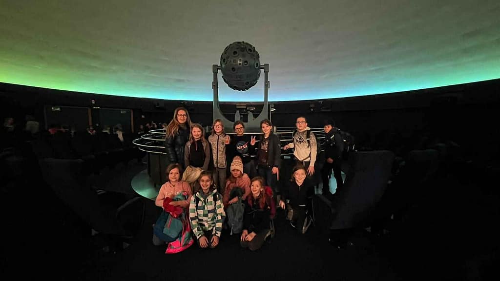 Nachdem wir bei unserem Projekt „Unser Sonnensystem“ viel über das Weltall, die Planeten, Sonne, Mond und Sterne gelernt hatten, durfte natürlich ein Besuch im Planetarium Wien nicht fehlen. Bei sonnigem Wetter spazierten wir durch den Wiener Prater und bewunderten die Fahrgeschäfte. Wir durften sogar in eine Geisterbahn hineinschauen, die gerade in Stand gesetzt wurde. Besonders gefiel den Kindern die riesige Weltkugel vor dem Planetarium. Das spannendste war aber, das scheinbar unendliche Himmelszelt in der Kuppel des Planetariums. Die Kinder stellten ihr Wissen unter Beweis und lernten sogar noch etwas dazu, zum Beispiel, dass das größte Teleskop der Welt in der chilenischen Wüste steht und wie man in einem Raumfahrzeug die Toilette benutzt. Das war ein besonderer Vormittag:-))