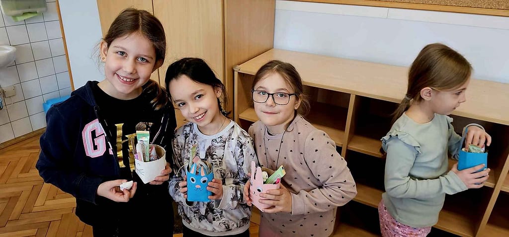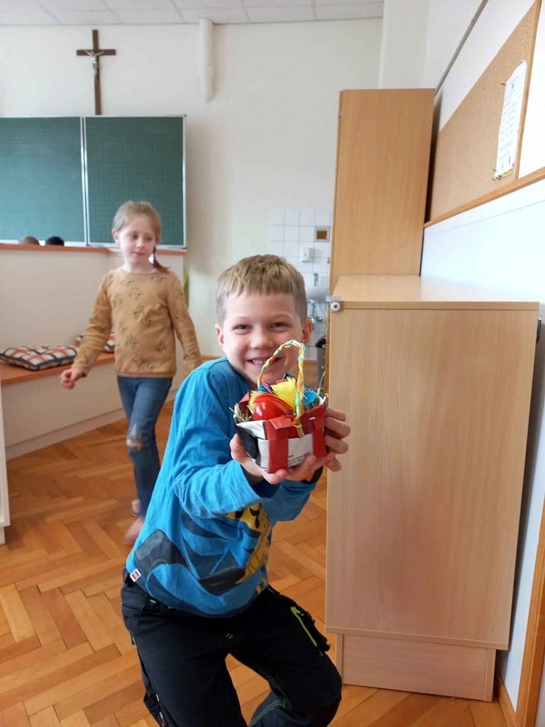 Am Freitag vor den Osterferien freuten sich die Kinder besonders auf die spannende Osternestsuche. Der Osterhase hatte auch in der Schule vorbeigeschaut und die wunderschönen Osternester gut versteckt. Am Ende hatte jedes Kind sein Nestchen gefunden und konnte es stolz mit nach Hause nehmen.