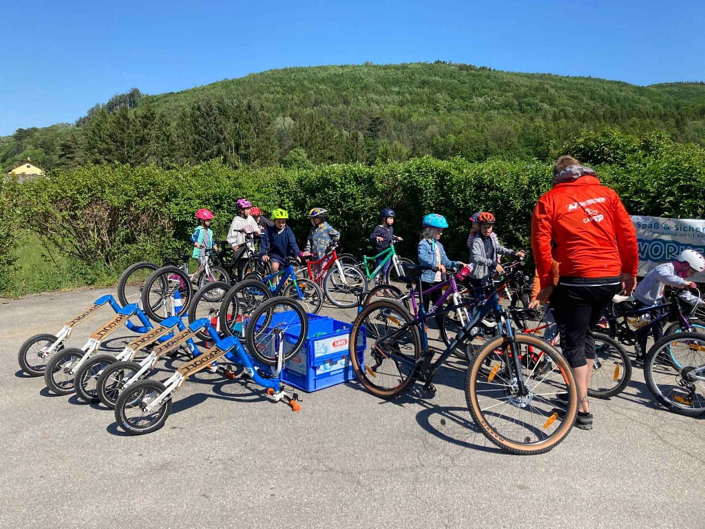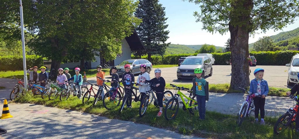 Bei sonnigem Wetter und mit guter Laune machten sich die Kinder der VS Klausen-Leopoldsdorf auf zum Parkplatz beim Friedhof, um mit ihren Fahrrädern am AUVA-Radworkshop teilzunehmen. Dort angekommen, erwartete sie ein großer Parcours mit vielen unterschiedlichen Stationen, die es zu bewältigen galt. Mit viel Geschick und Mut überquerten die SchülerInnen unterschiedliche Rampen, fuhren enge Kurven oder manchmal sogar einhändig.