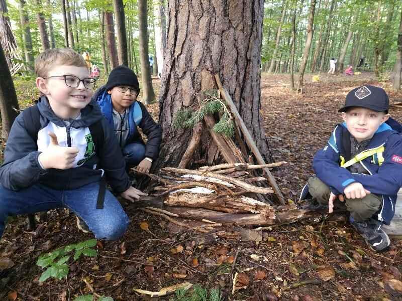 Die 2. und 3. Klasse machte sich am Dienstag zu einem Herbstwandertag auf. Gemeinsam marschierten wir in Richtung Hainbach und entdeckten dabei die jahreszeitliche Veränderung der Natur. Am Rückweg zur Schule durften die Kinder Naturmaterialien sammeln und in Kleingruppen ließen wir kleine „Wichtelhäuser“ daraus entstehen. Das war ein schöner Vormittag!