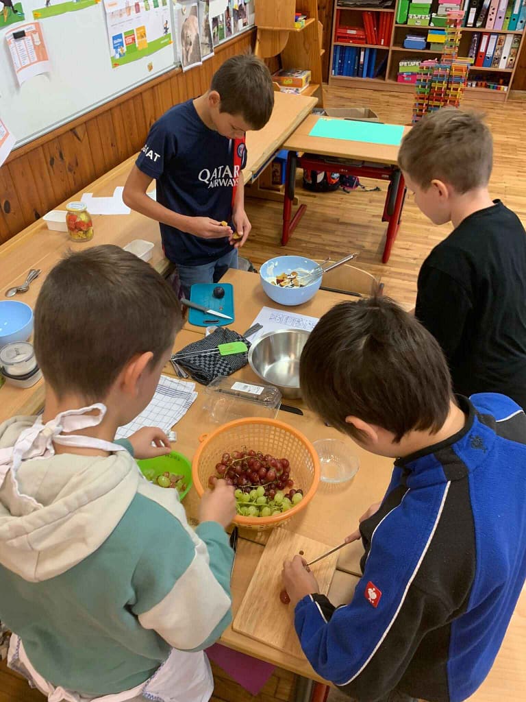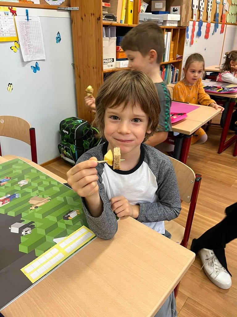 Viel Interessantes rund um das Thema „Gesunde Ernährung“ durften die SchülerInnen aller Klassen, kurz vor Beginn der Herbstferien, beim Ernährungsworkshop erfahren und entdecken. Die Kinder der 4. Klasse ließen sich eine selbst gemachte Topfencreme mit frischen Früchten schmecken. So macht das Lernen besonders viel Spaß!