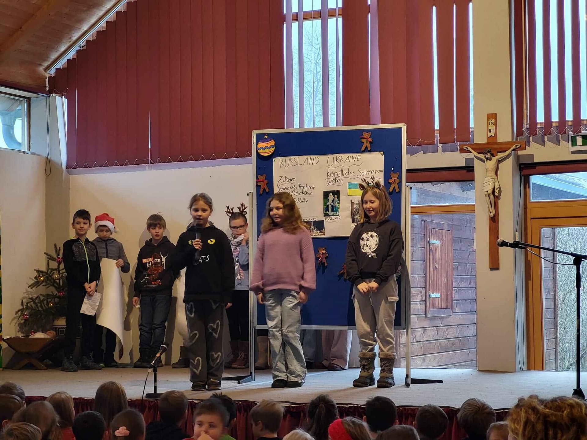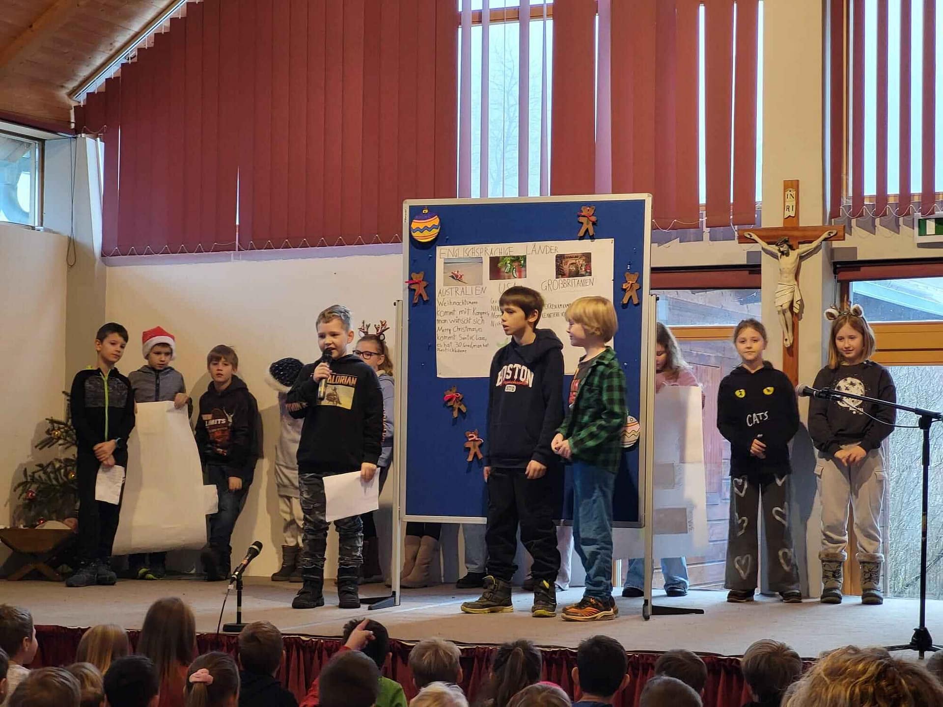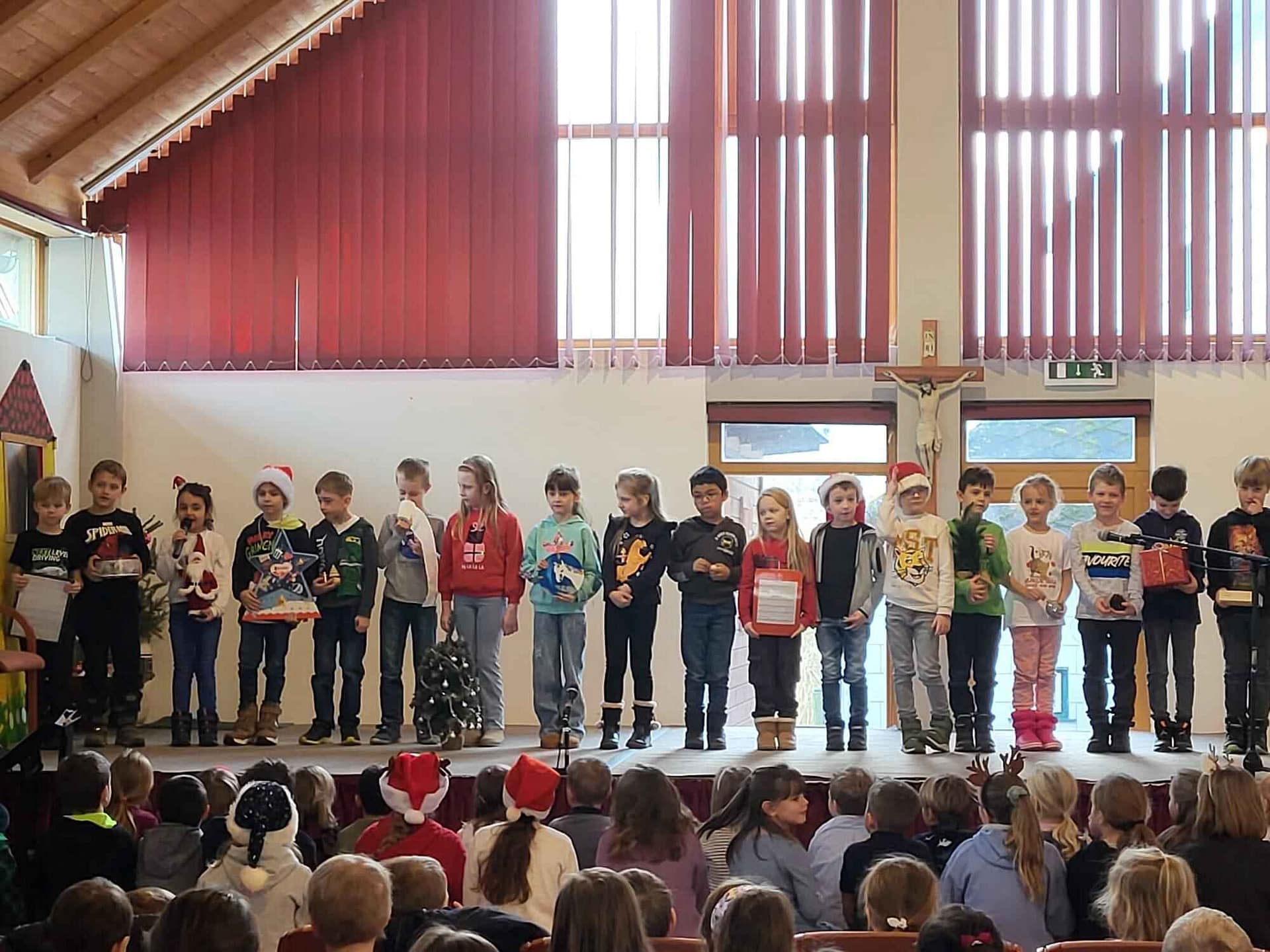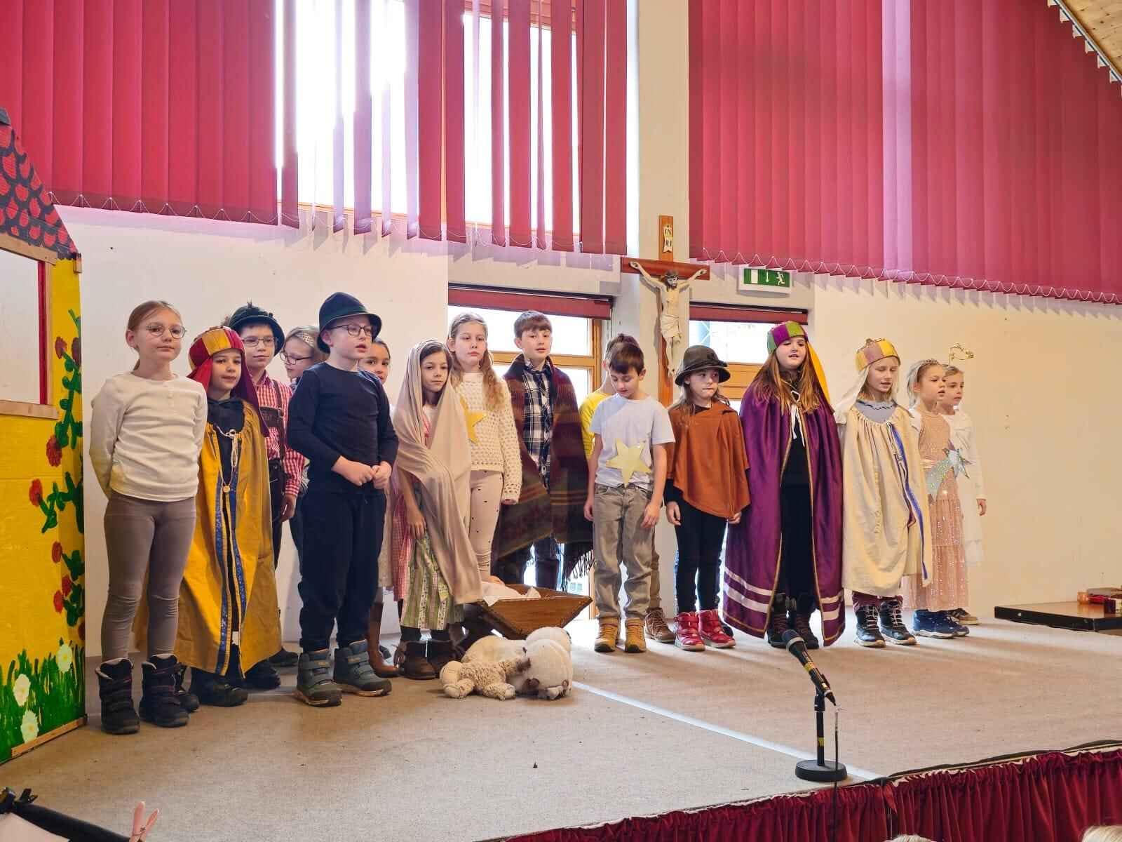Nach dem Weihnachtsgottesdienst wurden alle schon freudig im Leopoldisaal erwartet. Mit stimmungsvollen Darbietungen der Kinder und einem großartigen Krippenspiel der 3. Klasse wünschten die SchülerInnen sowie das Team der VS Klausen-Leopoldsdorf allen ZuseherInnen „Frohe Weihnachten“.
