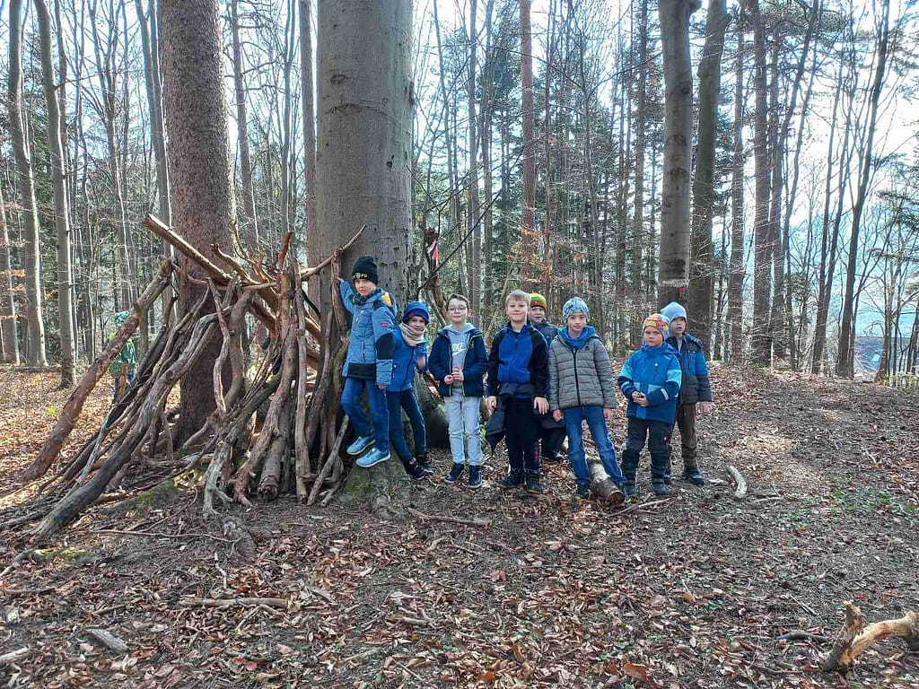 Bei herrlichem Sonnenschein durften die Kinder der 2. Klasse gemeinsam mit den Kindergartenkindern einen schönen Frühlingsspaziergang machen. Auf unserem Weg bestaunten wir die ersten Frühlingsboten und sammelten eifrig Stöcke und Äste, um am Ende noch an den Tippis auf der Lichtung weiterzubauen.