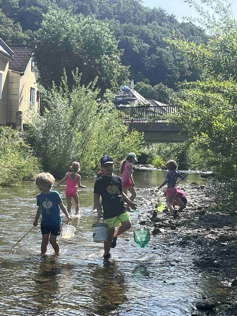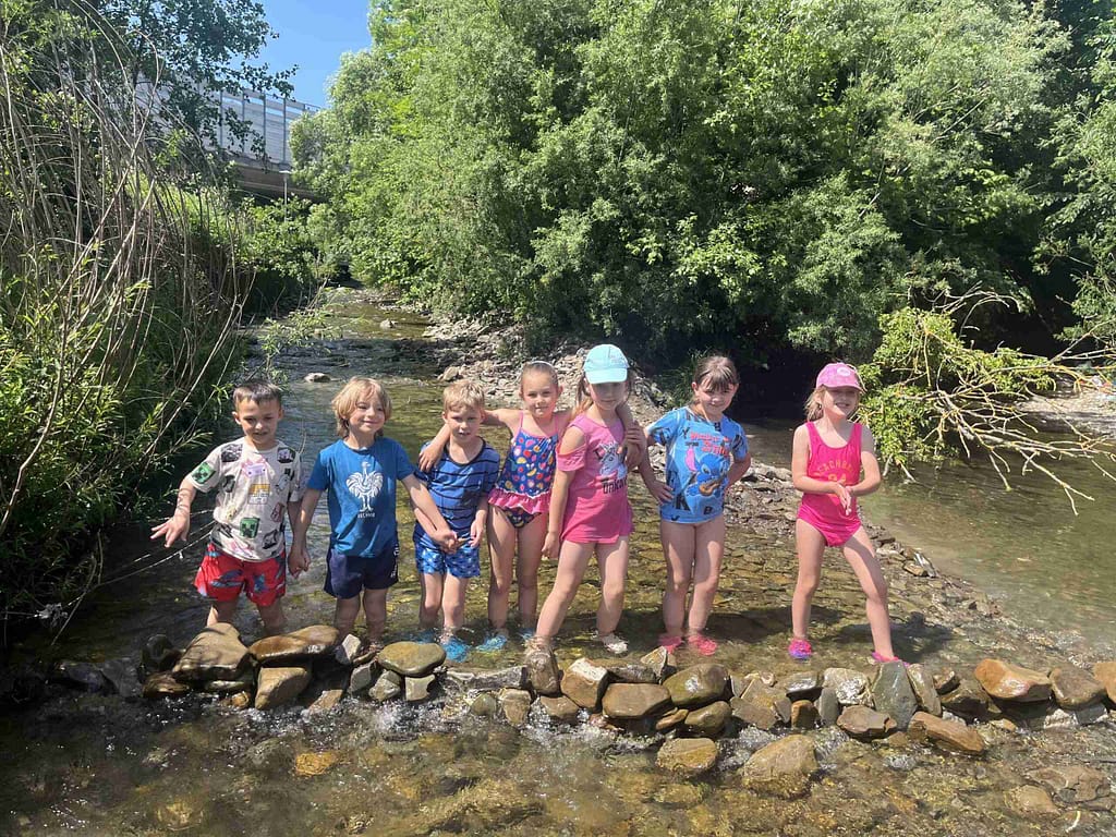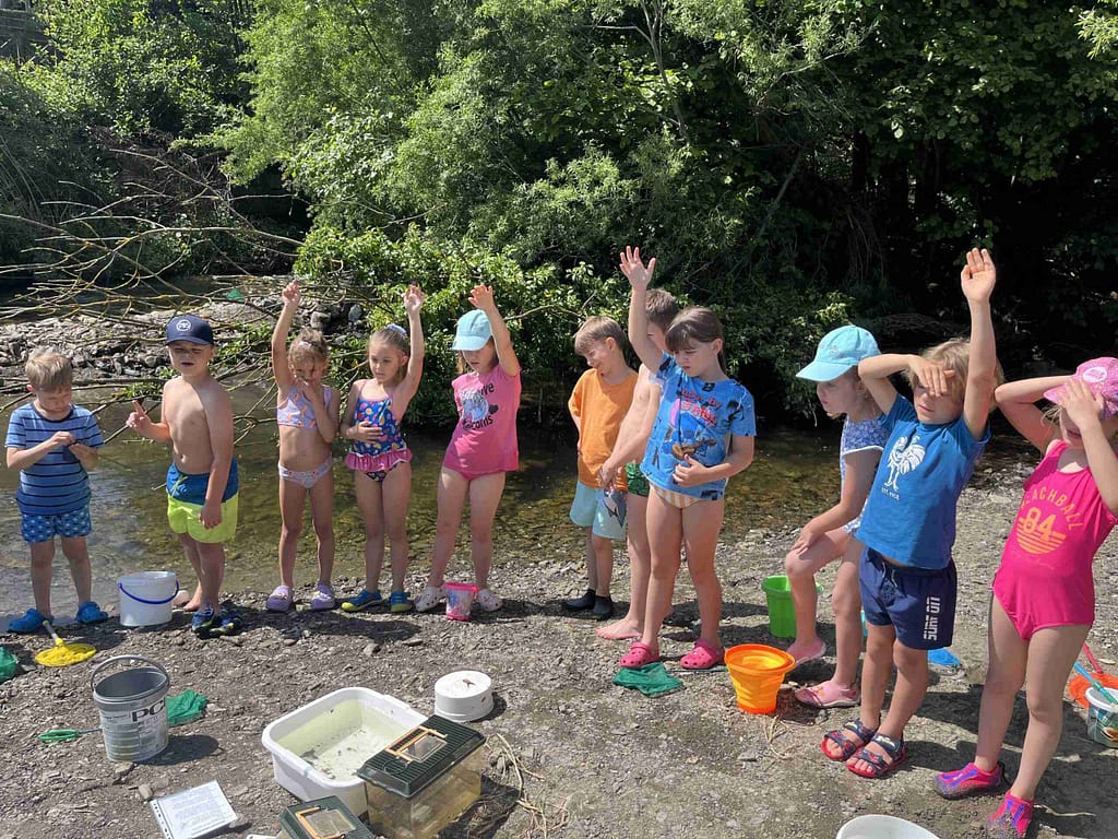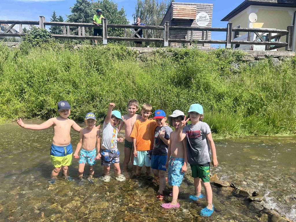 Die Kinder der 1. Klasse lernten bei einer Wasserführung im Hainbach viel über das Leben im Bach. Mit Netzen und Kübeln und Bestimmungskarten gingen sie auf die Suche nach Tieren und waren sehr erfolgreich. Am Ende des Vormittags wurden noch fleißig Inseln und Staudämme gebaut. Das war ein besonders lustiger Schultag:-))