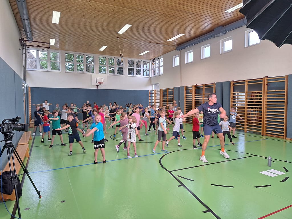 Am Mi., 8.10. hatten wir in der VS Klausen-Leopoldsdorf einen ganz besonderen Gast. Der Vorturner Philipp Jelinek besuchte unsere Schule. Nachdem das Kamerateam und die Regie im Turnsaal alles für die Live-Sendung aufgebaut hatten, durften wir unsere Positionen einnehmen und bekamen eine kurze Instruktion. Der Countdown wurde heruntergezählt und pünktlich um 9:05 ging es los. Gemeinsam mit Philipp turnten wir live im Fernsehen.