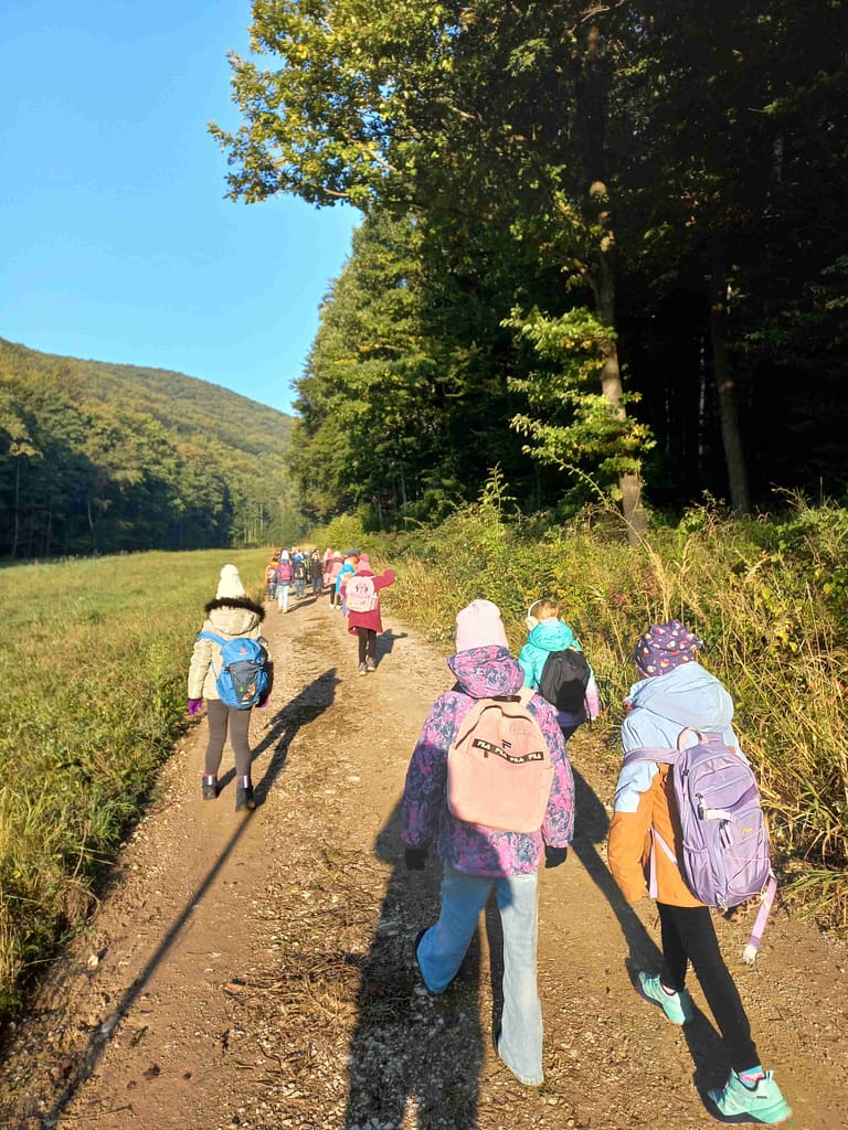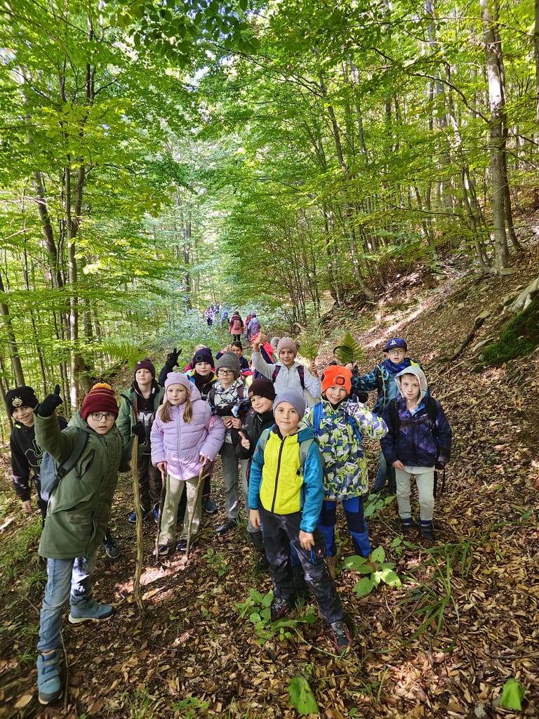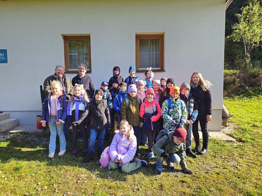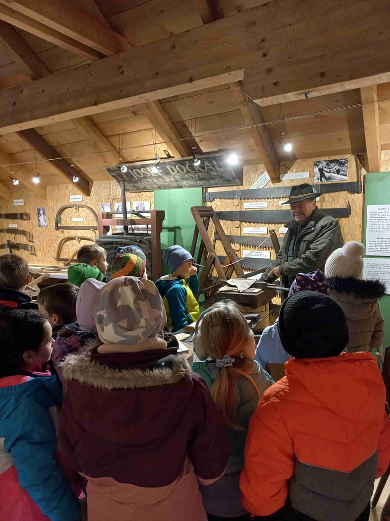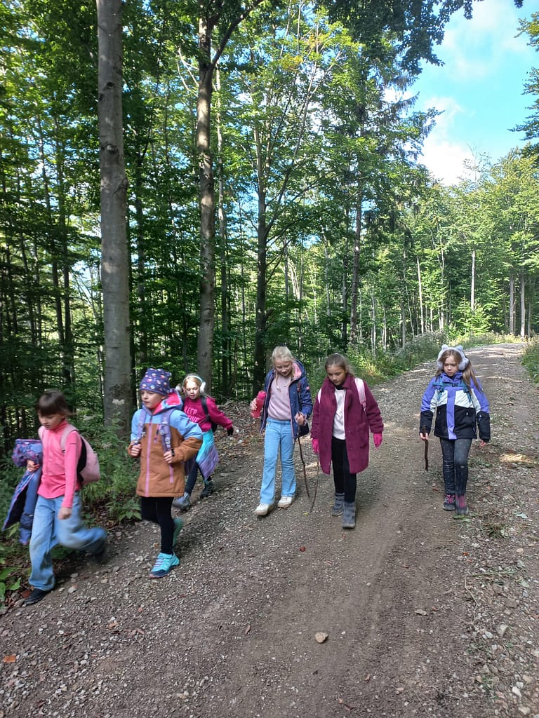 Vergangenen Freitag fand der gemeinsame Wandertag der 3. und 4. Klasse statt. Vom vereinbarten Treffpunkt, dem Kriegerdenkmal, ging es los Richtung Holztrift- und Forstmuseum.