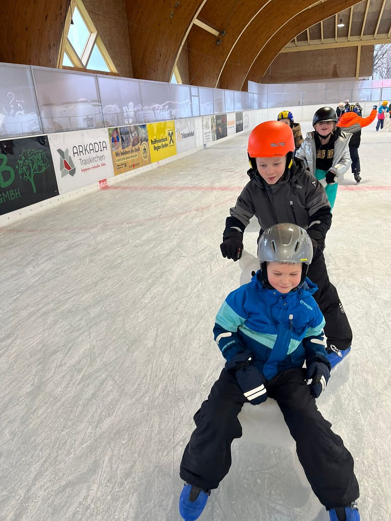 Auf diesen Tag freuten sich die Kinder der VS Klausen-Leopoldsdorf schon lange. Gemeinsam fuhren alle Klassen mit einem gemieteten Bus zur Eislaufhalle nach Traiskirchen. Dank der engagierten Unterstützung zahlreicher Eltern konnten alle Eislaufschuhe rasch angezogen werden. Die Kinder brannten darauf, aufs Eis zu stürmen, und hatten den Dreh nach ein paar wackeligen Versuchen schnell raus. Selbstverständlich durfte eine gemeinsame Jause zur Stärkung nicht fehlen.
